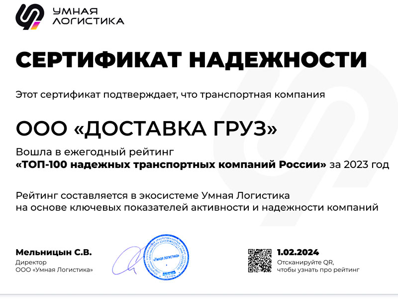 ООО Доставка Груз - является надежной транспортной компанией для своих клиентов и сотрудников, мы регулярно повышаем заработные платы и улучшаем условия труда - чтобы качество наших услуг оставалось на высшем уровне.